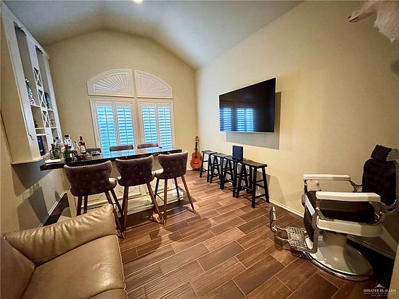 Beautiful 4-bedroom, 3-bath home in Mission, TX! This property features an open-concept layout with abundant natural light and a wall of windows overlooking the backyard. The kitchen is designed with granite countertops, custom cabinetry, stainless steel appliances, a gas range, and a large island with seating space. The primary suite offers a spacious bedroom, dual vanity, soaking tub, and separate shower. Additional highlights include plantation shutters, tile and wood-look flooring, and a versatile flex room that can serve as a study or office. Step outside to a backyard retreat with a large covered patio, wood ceiling, ceiling fans, and a custom outdoor kitchen complete with granite counters, sink, grill, and beverage fridge — ideal for entertaining year-round. Conveniently located near schools, shopping, and major roads.