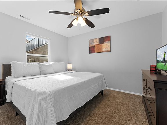 This beautifully renovated, turnkey condo is fully furnished and short-term rental ready! Throughout, you'll find luxury vinyl plank (LVP) flooring--waterproof, scratch-resistant, and pet-friendly--while plush carpet adds comfort to the bedrooms. The kitchen boasts granite countertops, matching Whirlpool stainless steel appliances, and a full-sized in-unit laundry room with extra cabinet storage. The spacious living room features a queen sleeper sofa, an electric fireplace, and a walk-out patio. The master bedroom offers a king-size bed, ample space for end tables, and an ensuite bathroom with granite countertops. The second bedroom provides another king-size bed and matching furniture for a polished look, while the third bedroom includes bunk beds, making it a great option for families. Enjoy breathtaking views of the Branson skyline from your private patio, with sights of the Ferris wheel, water tower, and theaters along the Strip. The Vineyards is located close to Table Rock Lake and Silver Dollar City and features an outdoor pool and basketball courts. Affordable dues contribute to healthy cash flow, plus no restrictions on self-management or property manager choice! Check out the 4K home video tour or call to schedule your personal showing today!