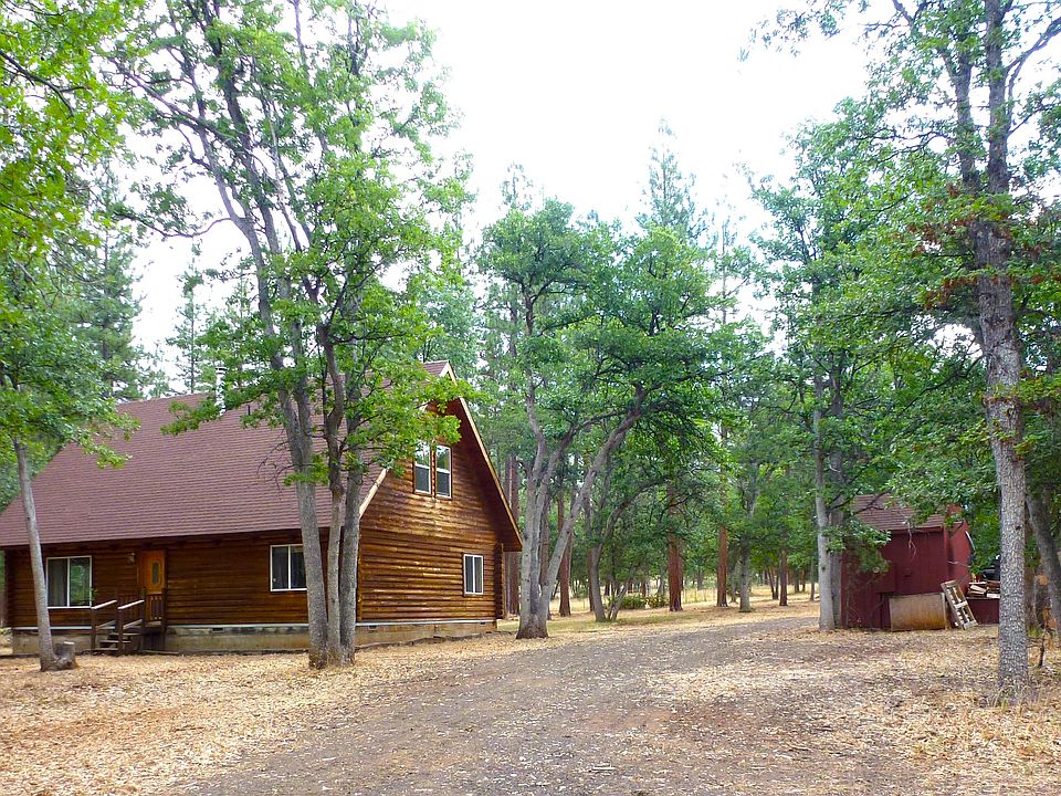 Log house nested in tall shady pines on 11 acres with beautiful T&G pine inside with tall vaulted ceilings and a open loft.