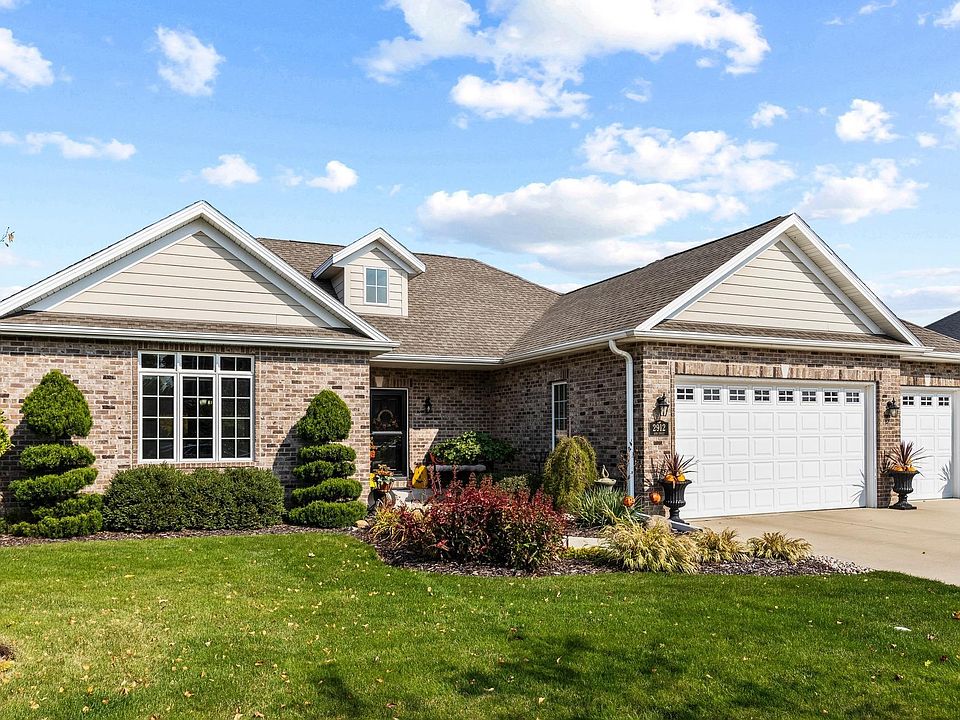 Stunning Ranch in the Meadows of Hunters Ridge. This 3 bedroom, 2 bath ranch is over 2000 sq ft. of open plan living. This quality built home has a living room with gas fireplace, dining area with sliders that lead to the patio. The fantastic Kitchen has stainless appliances, gorgeous granite counter tops with seating, and pantry. Brazilian cherry floors in Foyer, dining, kitchen and hallway. The master bedroom has tray ceiling, large walk-in closet and master bath with multi jet shower, whirlpool tub, granite counter top, and high quality hardware. Ready to finish lower level has 9ft ceilings and is stubbed for a bath. Oversized fully finished 3 car garage. The yard is truly incredible with large patio and gorgeous plantings and design . Seller is relocating, must see priced to sell!