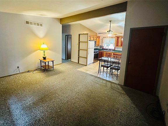 Sweetheart of a house -- great starter home or downsizer. Nothing to do but move in -- freshly painted and clean throughout. Walk into the enclosed front porch area and enter the open living room which leads to the kitchen and eating area. Two nice sized bedrooms with newer carpet and plenty of closet space. A finished basement has 2 rooms for gaming, relaxation, guest rooms or office. A half bath completes the basement. Concrete patio right outside the door to enjoy summer evenings. Shopping and restaurants just a short drive away. Plus convenient to the highway. Roof installed 2024/ Central Air 2024/ Furnace 2017. Call you favorite realtor today for a personal showing.