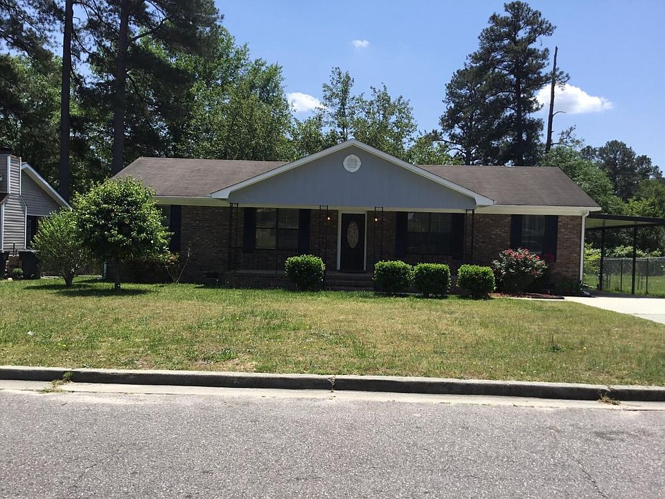 This is a 4 bedroom and 3 bath brick, ranch-style home is located in the Pine Place subdivision Great lighting in rooms, laminate flooring in all common area. The kitchen features stainless steel appliances, refrigerator, dishwasher, and cabinet space. Bedrooms feature nice size closets and fresh paint. A nice fireplace is located in the great room! Feel at home in this nicely privacy fenced back yard that features a nice deck.The home features a large front porch for relaxing, and a single carport. Pet Policy: Call office for pet approval.
