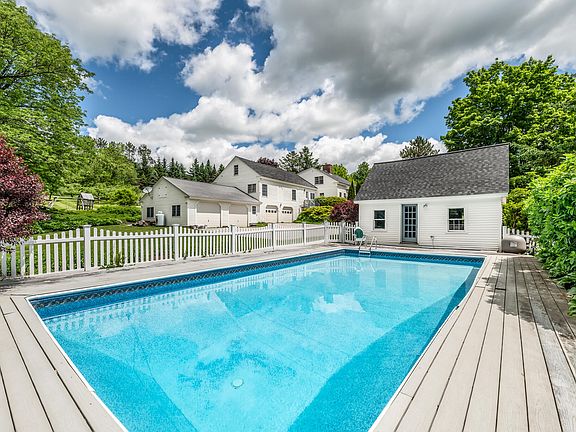 This historic New Englander home was originally built in 1847 & features 4 bedrooms, 3 full baths, 1 half bath, over 2,300 sq ft of living space, a 4+ car garage, sugar shack, inground pool with poolhouse & just over 28 acres of well manicured land. The home has been expanded & renovated throughout the years, all while preserving the many original period details that contribute to the home's charming character. The grounds have been meticulously maintained & offer beautiful perennial gardens; area for a 40x80 organic garden; mature Bosc pear trees; apple trees; plum trees; 2 carpathian walnut trees; American & Manchurian chestnut trees; raspberry & blueberry bushes; an abundance of sugar maples on a south facing slope, which produce over 40 gal of maple syrup in a single season; and miles of trails for walking, cross country skiing and/or snowmobiling. This property is ideally located privately out of town, yet with high speed internet & still in close proximity to all that the Bangor area & coastal Maine have to offer. This home truly is one of a kind & a must see.