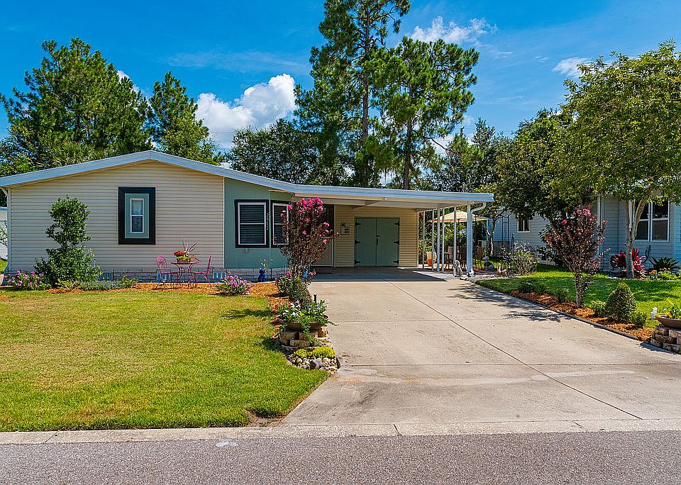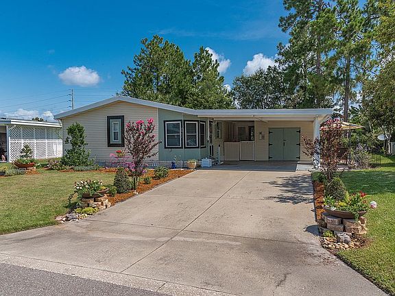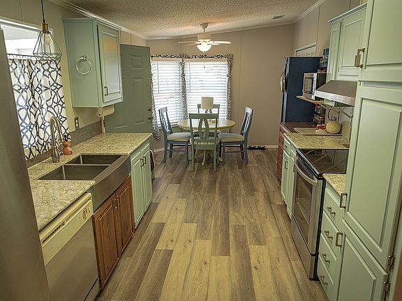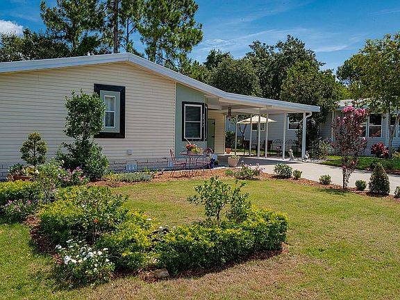 Desired FOX RUN, A 55+ Community, Offers this 3/2 Updated Home. Split floor plan with living/dining opening to equipped kitchen. The updated kitchen has breakfast nook, quartz counters and farm sink. Master bath has dual vanities, both bathrooms have vessel sinks. Closet system in the Master and Large Closets in Guest Rooms. No carpeting, flooring is laminate and luxury vinyl. 4 Season Porch and back bedrooms have a garden and pasture view. Storage shed with barn doors and large fenced backyard. Also, 2-Car Carport. Fox Run offers many Amenities.