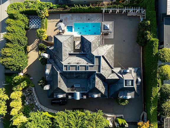 Magnificent European Chateau in Prestigious Altamont. A Marque Thompson–designed gated estate, this 6-bedroom, 8-bath residence blends European elegance with modern sophistication. Grand formal rooms, soaring ceilings & a handcrafted marble staircase set an opulent tone. The chef’s kitchen with Sub-Zero, Wolf & Miele appliances plus WOK kitchen opens to a resort-style backyard with swimming pool, Jacuzzi, firepit & pavilion. Upstairs, the primary suite is a spa retreat, with marble finishes, rain shower, freestanding tub & boutique-style walk-in. The lower level features a theatre, wine cellar, gym, sauna & nanny quarters. Enhanced with smart automation, radiant heating & biometric security, this estate defines luxury living in one of West Vancouver’s most prestigious enclaves. OH-Sun-3-5.