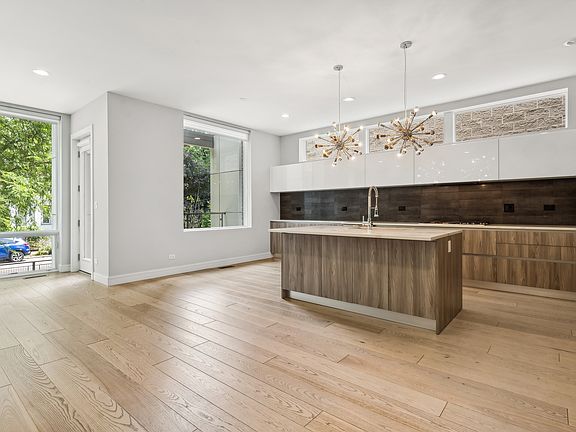 Stunning 3bd/2.1bath in boutique four unit condo bldg located in the trendy and thriving Hamlin Park/Roscoe Village area. The jaw dropping open concept floor plan has a massive living space that can easily accommodate large furniture pieces and is ideal for entertaining or sitting by the fire watching your favorite show or game. The luxe chef's kitchen has custom Italian cabinetry with soft close doors, professional grade Sub-Zero and Wolf appliances, quartz countertops with excellent counter space, wine fridge and bar seating for four. Completing the first floor is a large coat closet, a powder room, engineered hardwood floors and large balcony space directly off the kitchen perfect for grilling and al fresco dining. The spacious lower level has generous sized 2nd and 3rd bedrooms with a well appointed jack and jill setup full bathroom. The luxe primary suite has a great custom closet and spa-like mod bathroom with freestanding soaking tub, a double wide walk-in shower with frameless glass, and a double bowl vanity with sleekLED backlit mirror. Other highlights include ten foot ceilings throughout both levels, solid core 8ft doors, carpeted bedrooms and in-unit Washer/Dryer. Completing this amazing unit is one garage space included in the price with room for extra storage. A can't miss unit in a fantastic location steps to all things Hamlin Park, Midtown Athletic Club, Roscoe Village Strip and Clybourn Square.