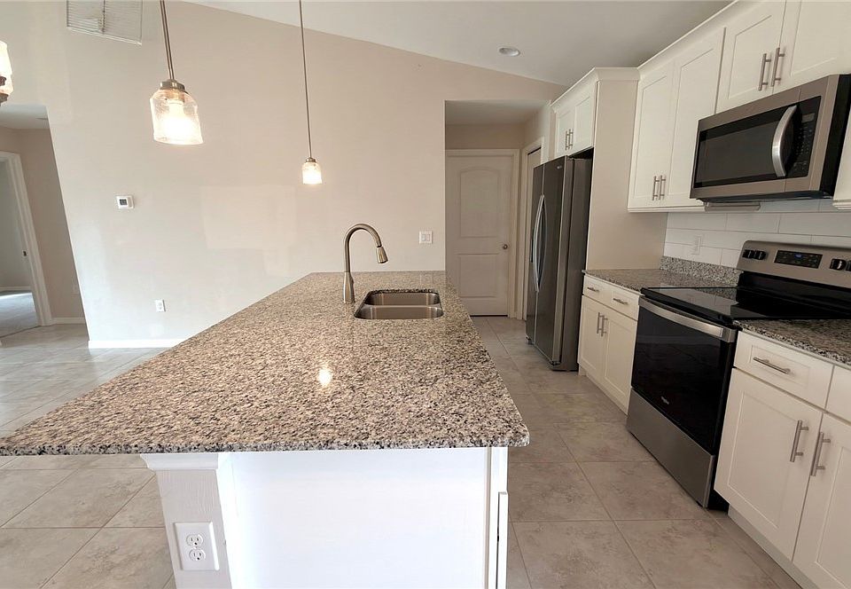 Beautiful 3 year construction. 4 bedroom 2 bath on the water, convenient to shopping and schools. Many upgrades, including granite countertops, stainless steel appliances, fixtures and lighting have been updated as well. Tiled in main living spaces, with carpeted bedrooms. Entertaining is a breeze with open floor plan and walk around kitchen island. Nice sized yard in both front and back, for outdoor activities.