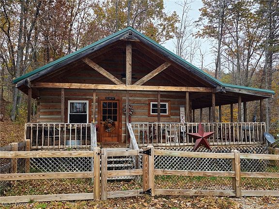 Do you want to savor the quietude of country living? Look no further because this is where the essence of nature meets the warmth of home. Welcome to this charming log cabin that is constructed with beautiful hemlock logs. You can experience a picturesque setting on almost 4 acres. The soothing sound of rain on the metal roof adds a touch of coziness creating a perfect harmony with the natural environment. One of the highlights of this home is the expansive wrap around porch that beckons you to the outdoors. With most of the year offering ideal weather, the porch becomes an extension of your living space and is a natural hub for entertaining or simply relaxing. The open concept living area offers a sense of space and the dine in kitchen comes equipped with modern appliances, making meal preparation a delight in this rustic setting. This two-bedroom one bathroom home will be easy to maintain with minimal upkeep and the loft will be a great area for extra storage. The all-electric setup adds to the convenience, ensuring efficiency with the heat pump system and the on demand hot water system. Extra protection will be provided for small children or pets with the fenced-in yard and the well-built shed is ideal to store lawn and garden tools in. This property is not just a house; it is an invitation to a lifestyle of tranquility, surrounded by the natural beauty of Wild Wonderful West Virginia. Make this like new log home yours and start living your mountain dream!