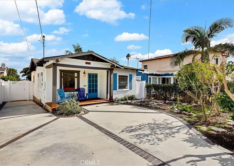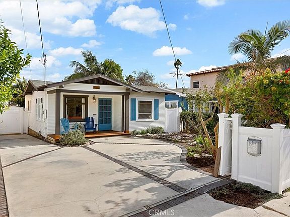 This charming single-level bungalow is reminiscent of times past while having the simple luxuries of the present. As you meander up to the bungalow, you are invited to sit on the small Brazilian walnut (Ipe) porch and relax for a moment or two.  Entering the front door you will see craftsmanship that marks the 1920s: Crown molding throughout, wainscoting in the living room, a built-in heart redwood hutch in the living room, hardwood floors throughout, and hardwood upper kitchen cabinets.  The living room is airy with a vaulted ceiling and an abundance of windows. The kitchen provides a wonderful ambiance to prepare nourishing meals:  a gas Viking range, a cast iron sink with underneath cold drinking water filtration and if you choose you may utilize the organic vegetable garden beds and heirloom fruit trees that are on the property.    The secondary bedroom has a large window which drenches the room in light as well as plenty of storage space. There is a Jack and Jill bathroom that reflects the peacefulness of the home;  a few touches that provide modernities are the whole house water filtration system (Radiant Life), and a tankless gas water heater. The primary bedroom has a cedar-lined closet and a sliding glass door. Both the kitchen door and the primary sliding glass door, open to a beautiful Brazilian walnut deck that has a Concord grape vine trellis. This design definitely utilizes the California coast; dining Al fresco, sipping tea or coffee in the morning or simply relaxing on the deck, while enjoying the smell of the ocean, the sound of local seal lions, or watching great blue herons fly by.  The deck also has an outside airy shower for those refreshing beach days;  walking distance to Cabrillo beach. There is a magnificent mission fig tree as you descend the deck steps as well as an outbuilding for storage. The majority of the property perimeter has vinyl fencing and a steel/vinyl security front gate, which opens to off-street parking for multiple cars. This bungalow has been architecturally designed to utilize the sunlight and the cool microclimate, there are amazing breezes that flow through the house in the afternoon.  This is a special property with a warm history that permeates oceanic tranquility.