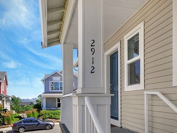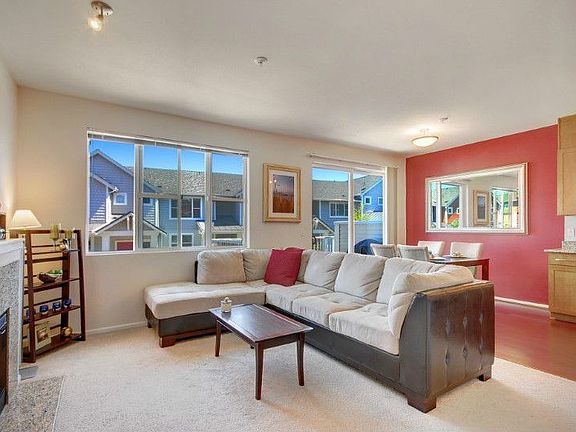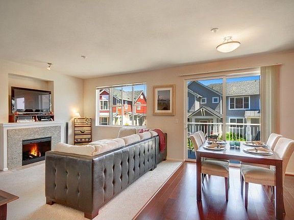 Exceptional 2 bedroom 1.75 bath townhome in a centrally located townhouse condo in High Point. Kitchen with upgraded slab granite counters and hardwood flooring. Dining Room with slider to entertainment lanai. Living room with fireplace. Top floor has spacious master suite with views of Space Needle, Elliot Bay and city. Walk in tile shower and walk in closet. 2nd Bedroom and second full bath in hallway. Ground Level has 2 car tandem garage + potential. Not short sale, $5,000 closing costs paid.