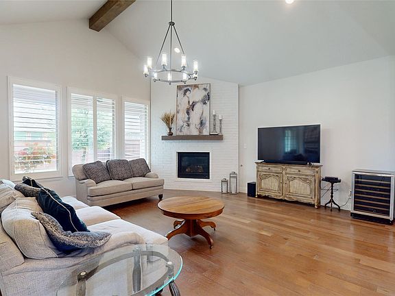 Large covered patioGorgeous wood flooringStainless appliancesQuartz countertopsSubway tile backsplashBeautiful brick elevationLush landscaping