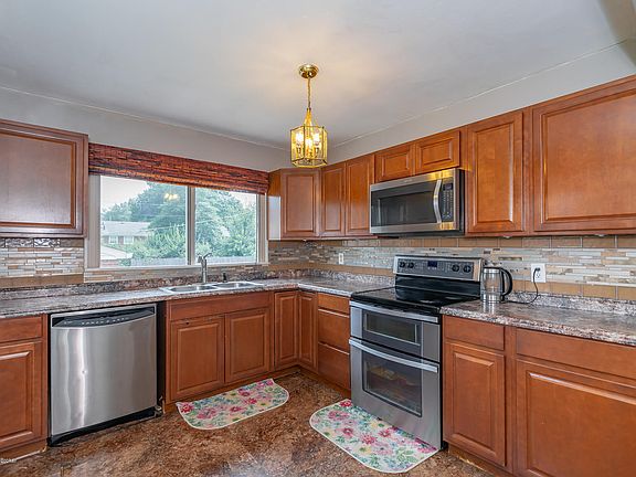 You'll love the floor plan of this light filled, low maintenance, all brick home. Hardwood floors have been refinished, bathrooms are updated, and a wall removed to make for an eat-in kitchen. Huge family room in the walk out lower level that features a fireplace, new flooring, bedroom and a full bath. Unfinished basement offers good storage space. The 2.5 car garage has extra room for a work bench. The large backyard is fenced with room for family fun and a garden.