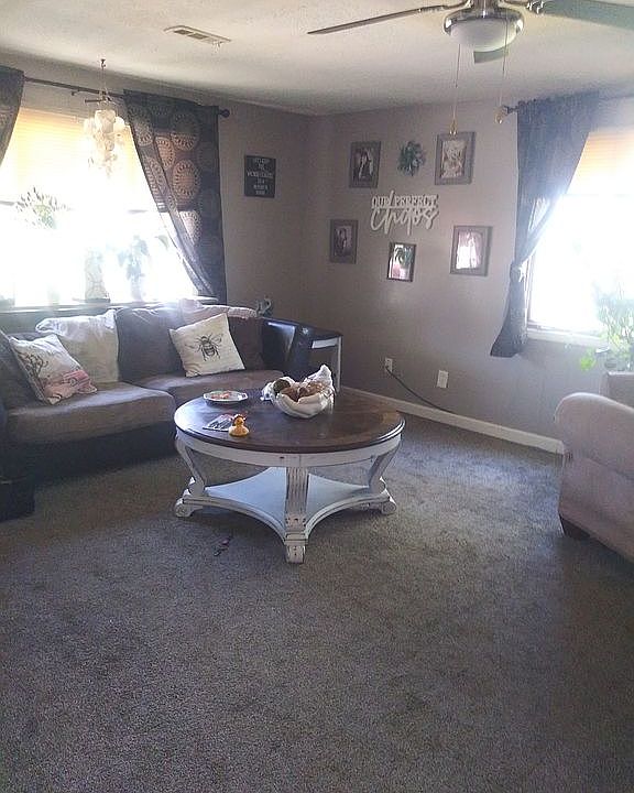 Really nice property with fenced in yard and new central a/c new furnace. Huge garage with a room in it that was being used for fitness. Lots of storage in garage has 3 rooms. living room and nice kitchen. Full house has been painted inside. Nice land to ride around in Go karts or 4 wheelers. We love it but we are planning on moving out of state so we are selling our home