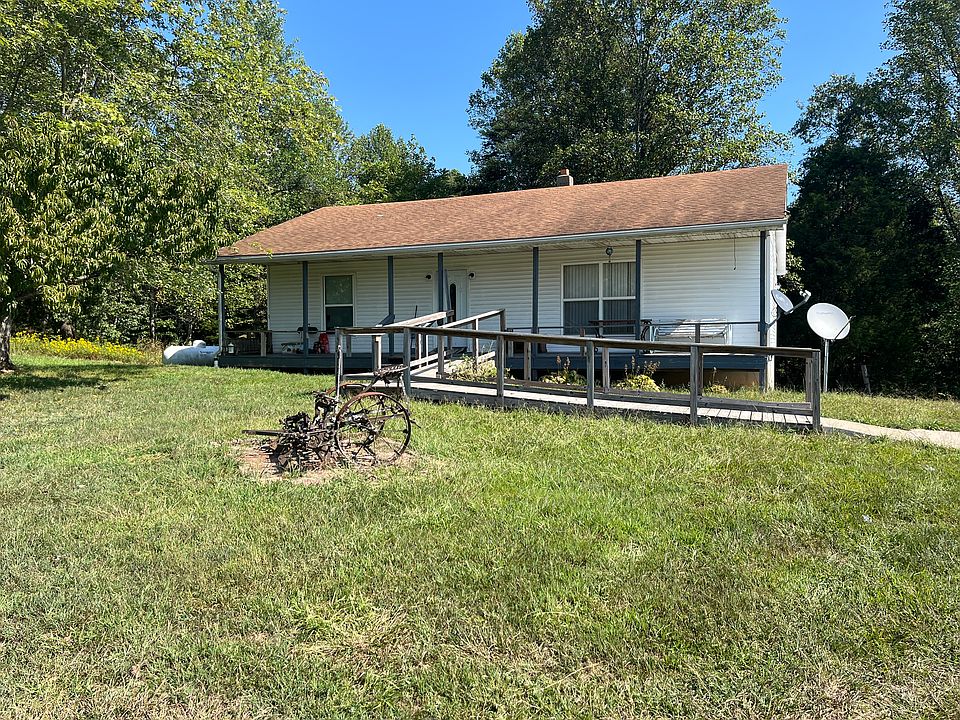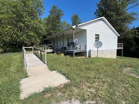 Privacy and solitude abounds! Two story ground level entrance front and back handicap accessible recently remodeled upstairs and newly remodeled downstairs electric heat and air conditioning with gas heat as well. Open kitchen into dining area and entertainment room. Deck off kitchen and front porch deck, located 1 mile off highway but just a few miles from Elizabethtown and Glendale ky. on a private gravel road, large lawn, with large outbuilding available for storage.
