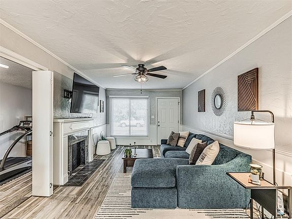 Super sweet home conveniently located to tons of shopping and dining! Biking, walking, running, windsurfing, sailing, etc are a quick 5 minutes to Lake Hefner! The home is light and airy with many updates combined with the traditional charm of built-ins and fireplace (faux). The converted garage is a perfect large 3rd bedroom OR flex space for a home gym or second living space. Large backyard with plenty of space for fur babies or entertaining. Large 3+ car driveway.