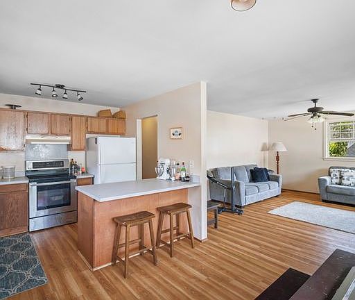 Located off Rice Street, down a one-lane residential road, are 2 legal homes on 1 parcel of land. Each home has its own water and electric meters. The front house has 2 bedrooms, 2 bathrooms, a kitchen and living area above an attached CMU garage. Accessible from the garage is the laundry room, half bath, and a large bonus room.