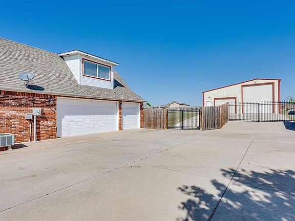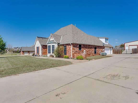 Moore schools ~ Check out this beautiful home on 1 acre MOL fenced with a workshop ~ RV storage and lots of extra concrete for additional parking ~ this one is loaded up with "extras" ~ walk in to large living area with flex living or dining and a study ~ living area has a corner fireplace ~ kitchen has lots of custom oak cabinetry ~ primary bedroom offers a large tub plus a shower and his and her sinks ~ walk in closet ~ bonus room which could be a bedroom or a living area ~ attached garage plus a workshop with electric, concrete, and RV storage ~ privacy fenced backyard ~ gated community .... make your appointment to take a look