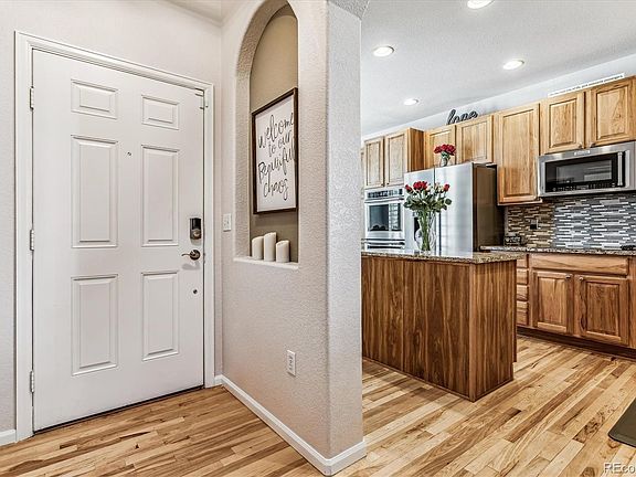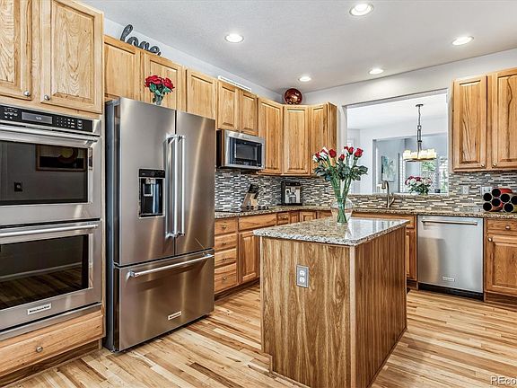 This stunning home w/beautiful curb appeal features plantation shutters throughout! A covered front porch oversees blooming flowers/plants; summer shade from a lovely mature tree. Want a 3-car garage/driveway.. this is a RARE find! Upon entering you will be welcomed by breathtaking hardwood floors throughout the entire main level! The remodeled kitchen has extensive cabinets +storage, KitchenAid stainless appliances including double ovens, granite counters, tile backsplash, + a natural stone drop-in sink! A large pass through window to the dining room makes gatherings & entertaining ideal! Flow into the family room with a significant vaulted ceiling, two-sided gas burning fireplace, built-in shelving & windows galore! Need more entertaining space & relaxation? The backyard was professionally landscaped w/$35K+ upgrades including large river rock, new mulch, layers of retaining walls, fabulous pine trees, stamped concrete & brick pavers, artificial grass/turf w/capped sprinklers, dog door access & a custom-built privacy fence w/ambiance lighting for quiet summer nights. Roof replaced in 2016 including exterior paint. Several windows are newer with exterior paint only 4-5 years old. Enter upper level and notice the upgraded carpet/padding. This LOFT living square footage allows you to define this space for your ideal use. Two bedrooms +primary bed/bath are highlighted w/an upper level laundry that includes the washer/dryer. Don't miss the primary bath w/jetted soaking tub, primary tray ceiling & huge 5-piece bath w/walk-in closet! Enjoy the convenience of a 5-min walk to Highlands Point E/W trail & paths, back country access+ a short walk to the elementary, middle & high schools! Utilize 4 rec centers featuring a climbing wall, lazy river/pools, golf simulator, tennis courts, batting cages. Close to shopping, dining & parks w/local town center events! Take a short drive to Daniels Park set on a high mesa, this 1,000 acre park has views of canyons and roaming bison.