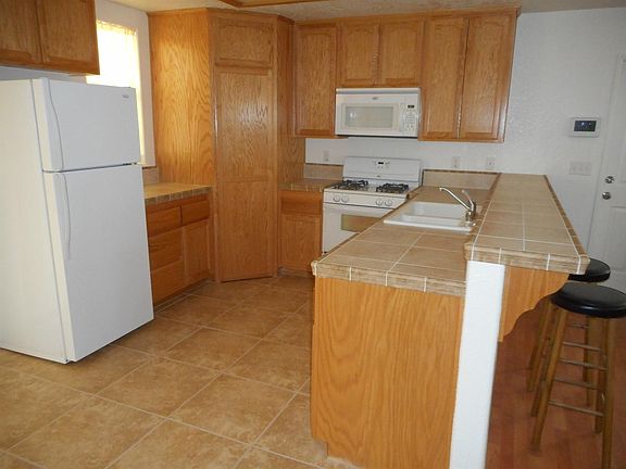 VERY CLEAN & SHOWS LIKE NEW - This view-home on the west side of town has 2 bedrooms, 1 bath, wood stove, central heat and air conditioning, spacious kitchen with stove, refrigerator & dishwasher, washer & dryer, floors are a beautiful combination of laminate wood, tile, and carpet, large back covered patio, and two car garage. Outdoor pets only, limit 2 (no farm animals), (Furnishings currently in home are optional.)