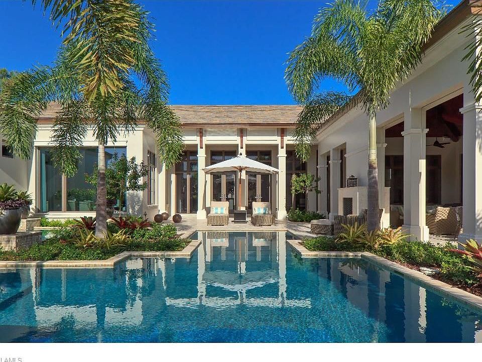 H.9754 - HUGE price reduction! Fabulous (almost new) Mediterra estate home with transitional modern style. Built by award winning BCB Homes and designed by Stoffit-Cooney Architects. One story great room plan boasts all the newest modern and finest finishes. Soaring ceilings with floor to ceiling windows throughout great room finished with custom motorized shades. Gourmet chef's kitchen with professional appliances and custom wood cabinets, extensive granite and stone finishes. Walk in wine room. House sound system with Sonos. Amazing huge outdoor living area with state of the art outdoor kitchen and fireplace. Beautiful tropical heated pool and spa with modern design features throughout. Outdoor motorized screens to enjoy the best outdoor life Naples has to offer. Serene lake and preserve view. Finest furniture, decor and custom art work included!!