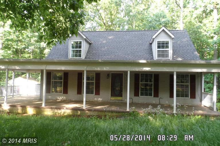 Adorable Cape Cod with 2 main floor bedrooms, big front porch and friendly kitchen. Completely fenced on 6 lovely wooded acres. Location is easy commute to Fredericksburg. Needs some TLC and is sold in "as is" condition.