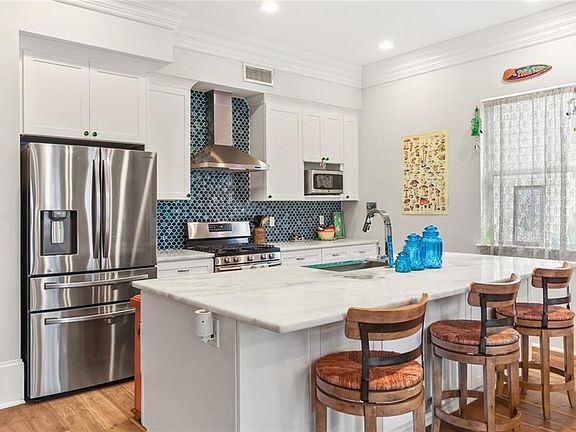This spectacular double gallery - built in 2019 - in the Fairgrounds triangle is just steps from Jazz Fest! This home features gorgeous open living space and kitchen upon entry, with inviting front porches and a front balcony for outdoor living and catching the best of the Fest! Large primary suite downstairs with impressive walkthrough shower, large stand alone tub, and HUGE custom closet! Upstairs, you'll find two beautifully designed bedrooms with shared bath! Plenty of storage in this stunning home. Plus a fantastic backyard for private events and enjoying the upcoming cooler temps and spectacular spring! Wanting to venture out? Head over to local classic Toast for breakfast or any of the spectacular restaurants along Esplanade for dinner! This home is a dream for anyone looking for a beautiful, well-appointed space and all of the best New Orleans has to offer.