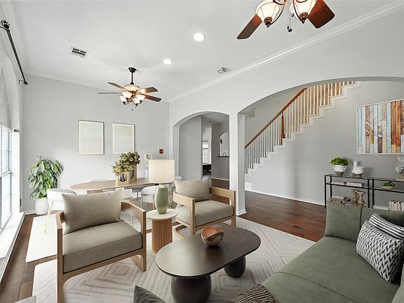 WELLINGTON BEAUTY ON AN OVERSIZED CUL-DE-SAC LOT WITH MATURE TREES! Feel the charm the moment you step inside to extensive wood flooring, crown molding, soaring ceilings & an open-concept floor plan, plus a garage with epoxy flooring & recently replaced garage door openers. Cook with ease in the chef’s kitchen featuring granite countertops, stainless steel appliances, tons of cabinets for storage, an island & a pantry, or relax & recharge in the downstairs primary suite boasting a dual sink extended vanity, jetted tub, separate shower & a large walk-in closet. Unwind in the cozy family room showcasing a gas log fireplace & built-in cabinets, or make great use of the upstairs offering a game room, generous secondary bedrooms & a bathroom. Outside, enjoy a spacious backyard made for relaxing or entertaining, complete with a covered patio that’s perfect for weekend barbecues or quiet mornings with coffee. Wellington residents have access to pools, playgrounds, tennis courts, pickleball, volleyball, basketball, a 3-hole putting green, 9-hole disc golf, a fitness center, lakes, miles of trails & more! Attends top-rated Flower Mound schools!