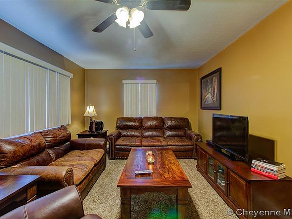 Come home to this well maintained ranch style home conveniently located near downtown Cheyenne. The large, fenced backyard with covered patio make this home perfect for entertaining. Two bedrooms located on the main floor, with an additional bedroom and living room in the basement provide ample space for everyone. This home boasts plenty of storage with two utility sheds and additional unfinished area in basement.
