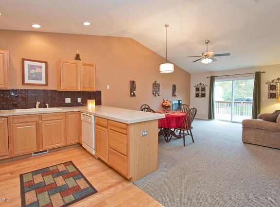 Hard to find newer 3 bedroom, 3 bath condo in Wyoming Village. Meticulously cared for unit with fabulous hardwood flooring in kitchen and entry, open floorplan. Clean and fresh! Main floor features cathedral ceilings, large master suite and large laundry area. Deck off the living area with stairs for easy access to back yard. Lower daylight level has a second bedroom and non-conforming third (armoire closet stays) with third full bath and spacious family room. Lots of additional storage and work shop area in the utility room. Tasteful colors and decor - move in ready! Extra large attached garage. Quiet development, convenient location. Make an appointment to see today!