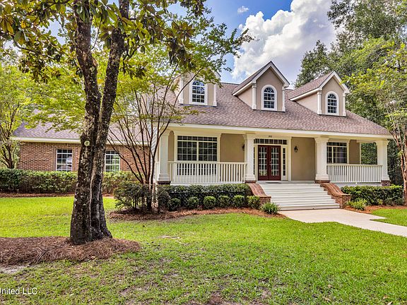 Enjoy peaceful living in this never-before-occupied home on 2.38 acres with a private pond. A full-width Southern front porch sets the tone, leading into light-filled living spaces and a chef's kitchen with granite countertops, prep island, custom cabinets, gas cooking, and stainless GE appliances. The primary suite is on the main level and features his and her closets with custom features and a spa-like bath with a jacuzzi tub, walk-in shower, double vanities, and a laundry chute for convenience. The main level also includes an additional bedroom perfect for an office or guest room. Upstairs, two generously sized bedrooms each have large ensuite baths and walk-in closets, plus a central loft and second laundry room. The lower level includes a laundry room and over 1,200 sqft of unfinished heated/cooled bonus space with water/sewer connections. The opportunities this additional space provides are endless!! It is just waiting on someone's personal touches. (This approximately 1,231 sqft unfinished heated and cooled space is not included in the advertised sqft). The home is equipped with an HVAC system for each floor to provide comfort and efficiency during hot summer days. Above the 2-car garage, you will find storage-ready attic space. Don't miss your chance to own this country retreat before Vancleave property values climb with the new 4-lane highway!