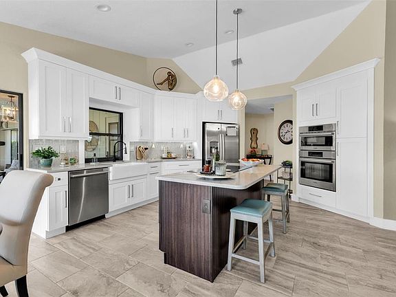 Welcome to this exceptional WATERFRONT home in Punta Gorda Isles. Perfectly positioned on an oversized tip lot at the end of a quiet cul-de-sac, this 3 bedroom, 2 bathroom, 2-car garage pool home with a den and family room offers the ultimate in luxury Florida living with 145 feet of water frontage and TWO private docks. CLICK ON THE VIRTUAL TOUR LINK 1 FOR THE VIDEO AND VIRTUAL LINK 2 FOR THE 3D TOUR. Featuring a bright & airy floor plan, tile flooring throughout, a whole home water filtration system, Bahama shutters, and MUCH MORE! A traditional living room with glass sliders opens seamlessly to the lanai, blending indoor and outdoor living. A gourmet eat-in kitchen is a chef’s delight, featuring stainless steel appliances including a built-in oven and convection oven, an island with a cooktop, granite countertops, tiled backsplash, farmhouse sink, and a convenient pass-through window to the lanai. The adjoining family room with custom built-ins expands the entertaining space and invites relaxed gatherings. The elegant master suite is a true retreat, offering private access to the lanai, a generously sized walk-in closet, and a spa-inspired bathroom with a dual sink vanity, a walk-in shower, and refined finishes that create a serene and relaxing atmosphere. The guest bedrooms are on a split floor plan for added privacy, with a nearby guest bathroom offering both a walk-in shower and direct lanai access. A separate den provides flexible space ideal for a home office, study, media room, or additional guest bedroom — adapt it to your lifestyle needs. Step outside to your private oasis—an expansive screened lanai designed for entertaining, complete with an outdoor grill, mini refrigerator, bar seating, sparkling heated saltwater pool with fountain, and separate spa. The backyard is a boater’s dream, showcasing 145 feet of water frontage, a 45' x 7' concrete dock with 10,000-lb boat lift, and a second 15' x 6' concrete dock, both with water and electricity, providing plenty of space for multiple vessels. With its stunning water views, unmatched boating amenities, and elegant design, this property embodies the pinnacle of coastal luxury living in Punta Gorda Isles. 2022 TILE ROOF - HURRICANE PROTECTION - 2025 WATER FILTRATION SYSTEM - 2022 POOL RESURFACED. Enjoy all the amenities that Punta Gorda has to offer, such as biking, fishing, boating, dining, live entertainment, and much more! Close to Fisherman's Village, Ponce De Leon Park, Gilchrist Park, and Historical Downtown Punta Gorda. Just a short car ride to award-winning beaches! Schedule your showing TODAY!
