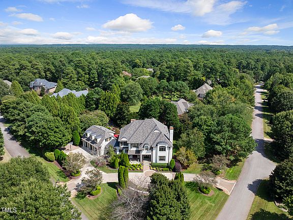 STUNNING FRENCH CHATEAU ESTATE ON 1.03 ACRE BEAUTIFULLY LANDSCAPED LOT MASTERFULLY UNITES TIMELESS ELEGANCE WITH MODERN COMFORT. EXQUISITE FINISHES: WIDE PLANK AUSTRALIAN CYPRESS HARDWOODS, HAND-HEWN ANTIQUED BEAMS, INTRICATE CROWN MOLDING, ANTIQUE CHANDELIERS, 4 FIREPLACES & WINE CELLAR. FIRST FLOOR SPA INSPIRED PRIMARY SUITE, SPACIOUS ENSUITE BEDROOMS & BONUS/IN-LAW SUITE OVER 3 CAR GARAGE. GOURMET KITCHEN DESIGNED FOR THE DISCERNING CHEF, FEATURING GRANITE COUNTERTOPS, PREMIUM STAINLESS-STEEL APPLIANCES INCLUDING A 48'' VIKING RANGE, DUAL BOSCH DISHWASHERS (2024), WARMING DRAWER, & BUTLERS PANTRY WITH NEW ICE MAKER (2024) . NEWLY APPOINTED MEDIA ROOM (2023) BOASTING A 120'' PROJECTION SCREEN FOR CINEMATIC EXPERIENCE. INVITING RETREATS LOCATED THROUGHOUT THE GROUNDS: MULTIPLE PRIVATE PATIOS, A STATELY WOOD-BURNING STONE FIREPLACE, AND A PROPER FENCED ROSE & HERB GARDEN, ALL COMPLEMENTED BY A GRAND CIRCULAR DRIVEWAY & NEW ROOF (2024). METICULOUS GROUNDS ARE PROFESSIONALLY DESIGNED AND ENHANCED BY A 21-ZONE IRRIGATION SYSTEM, ENSURING BEAUTY AND EASE OF CARE THROUGHOUT THE SEASONS. AL FRESCO LIVING AT ITS BEST: A COVERED OUTDOOR KITCHEN WITH PROFESSIONAL GRADE BUILT-IN GRILL AND GENEROUS SEATING AREA, PERFECT FOR YEAR ROUND ENTERTAINING. PRIME CONVENIENCE IDEALLY LOCATED NEAR TOP-RATED SCHOOLS, EXCEPTIONAL SHOPPING & DINING, WITH SEAMLESS ACCESS TO RDU INTERNATIONAL AIRPORT, DOWNTOWN RALEIGH, AND RTP. NEIGHBORHOOD POOL, TENNIS, & CLUBHOUSE. ENCOMPASSING OVER 7400sf, THIS RESIDENCE OFFERS AN ARRAY OF LUXURIOUS AMENITIES, PERFECTLY DESIGNED FOR GRACIOUS ENTERTAINING AND REFINED EVERYDAY LIVING!