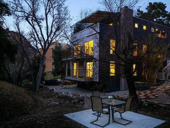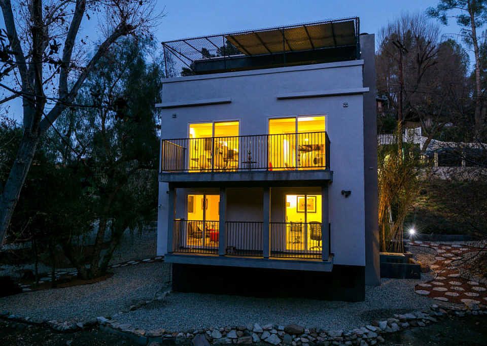 Mid-Century style tri-level with a dramatic spiral staircase in the rural setting of Malibou Lake. No HOA. This triple lot is over the hills from Malibu, nestled in a canyon with an easy drive to the #101, beaches, trails, award-winning schools, and restaurants. Private master suite on top level has a verdant canyon view and large balcony. Living area on middle level is sun-bathed with natural light, with an open floor plan, Silestone quartz kitchen counters, dining area, living room, and balcony. Lowest level has 2 more bedrooms, with their own en-suite bathrooms, shared balcony. Outside is a gently sloping backyard, multi-colored Zen rock garden, easy drought-resistant landscaping. This triple lot gives privacy between you and the neighbors. Additional climate controlled storage area of approx 400 sq ft with separate patio and entrance. ideal for music/art office studio