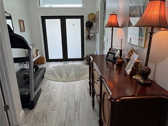 This home is priced to sell and upgraded to impress. You are going to love the wood look tile floors throughout the entire home even in the bedrooms! Every room has crown moldings, even the guest bedrooms and baths. The entry, living room, dining room and main bedroom all have recessed ceilings and crown moldings. The home has hurricane impact windows, no having to put up hurricane shutters here and the home is not in a flood zone, so no flood insurance required. The gourmet kitchen has quartz counters, stainless appliances, cabinet hardware, a nice sized pantry and tons of beautiful light grey cabinets. The main bedroom suite has a luxury bath with separate free-standing tub, frameless shower enclosure, beautiful accent tiles in the large shower, double sinks, lots of counter space and two nice sized closets. The guest bedrooms are split from the main suite and are large with a bath between them to share. The home is located on a quiet street and backs up to a vacant lot that's partially wooded. There is plenty of room for a pool or outdoor entertaining. The covered lanai is large and screened in as well. Come see this amazing home, you'll want to call it yours.