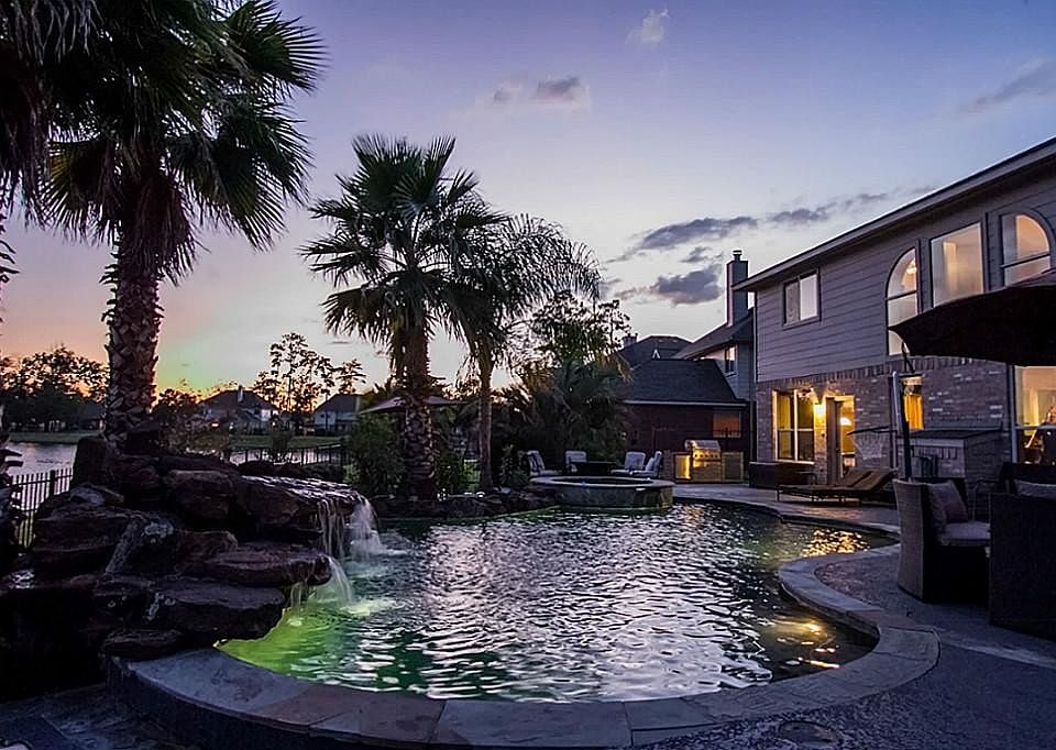 LAKE FRONT - Beautiful Legacy home in gated community in Legends Ranch. Tahoe flat cherry 42'' cabinets with glass doors , Coffee brown granite counter tops,kitchen island,butler pantry, Gorgeous pool over looking lake view. Exquisite stone tile , Media room, Game room, master downstairs, huge 32x14 bedroom upstairs which could be used as another master,wrought iron stair rail, 3 car garage,formal living and formal dining room, breakfast room, study with French doors! IMMACULATE!