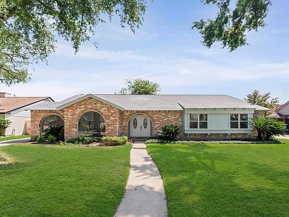 Stunning fully upgraded single-story home with a sparkling pool in the desirable Spring Shadows community. This move-in-ready property has been completely updated with stylish finishes throughout. The open-concept design offers a fully renovated kitchen with a large island, upgraded cabinetry, quartz counters, and stainless steel appliances. A home office is conveniently located just off the dining room. The entire home has no carpet, and all bedrooms are generously sized. Both bathrooms have been remodeled, with the luxurious primary suite showcasing a spa-like retreat with a walk-in shower, extensive cabinets, a large vanity area, double sinks, and a spacious walk-in closet. Step outside to your private backyard oasis with a covered patio and a recently replastered pool. Additional highlights include a large driveway, low tax rate, and low HOA fees. Sellers have spared no expense—request the full list of upgrades. Home has never flooded and is not in a flood zone.