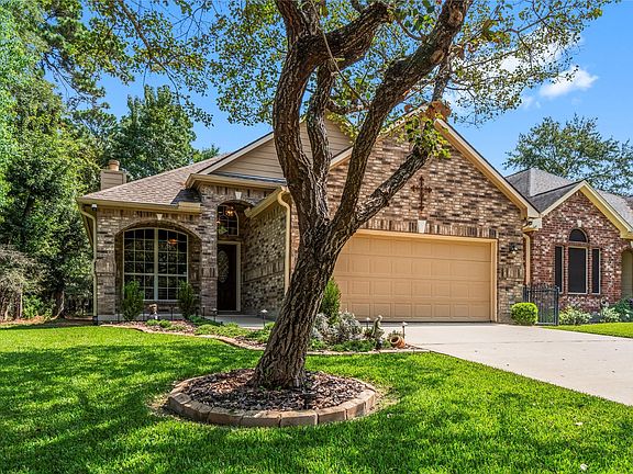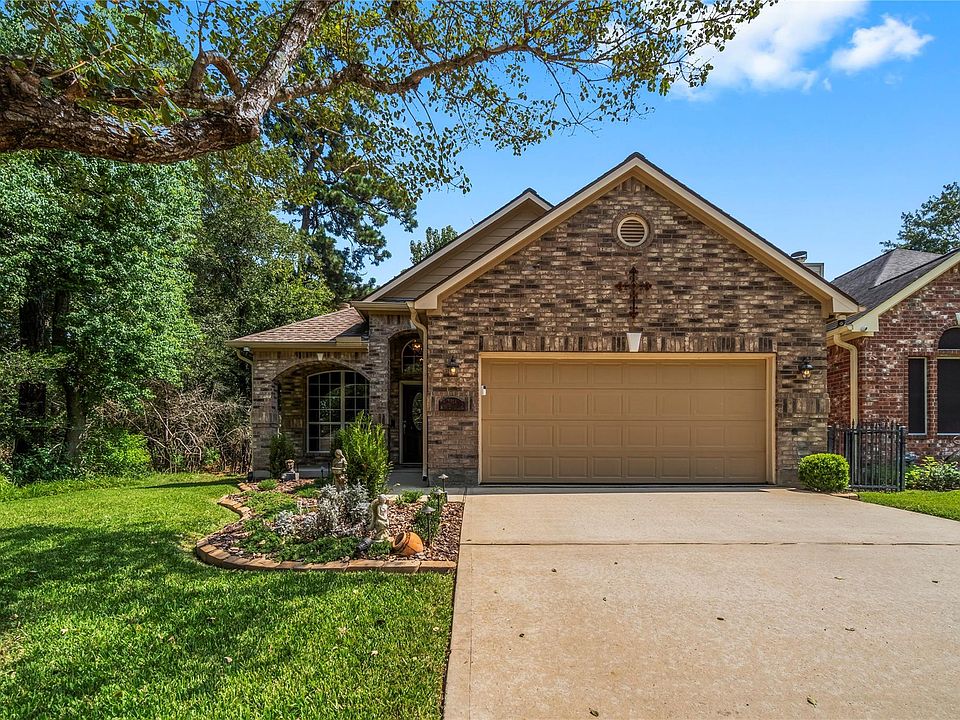 Meticulously maintained, one owner, single-story home in the sought after community of Walden on Lake Conroe! The beautifully landscaped exterior & front porch greets you as you walk inside to see soaring ceilings, crown molding, motion smart lights & attention to detail throughout. The living room features plantation shutters & electric fireplace open to the formal dining room & kitchen w/granite tiled counters & door to access patio. Spacious primary suite has views of the wooded backyard with greenbelt in between neighbors & ensuite w/elegant tiled floors, walk-in shower, soaking tub, dual sinks/vanities & huge walk-in closet w/built-ins. 2 additional bedrooms offer space for guests along with secondary bath. Enjoy sunrises & sunsets on the peaceful patio. Other updates include 2016 roof & HVAC, hybrid water heater w/heat pump & dual fuel generator. Walden offers a golf course, walking trails, fitness center, yacht club, tennis court, pool & boat ramps!