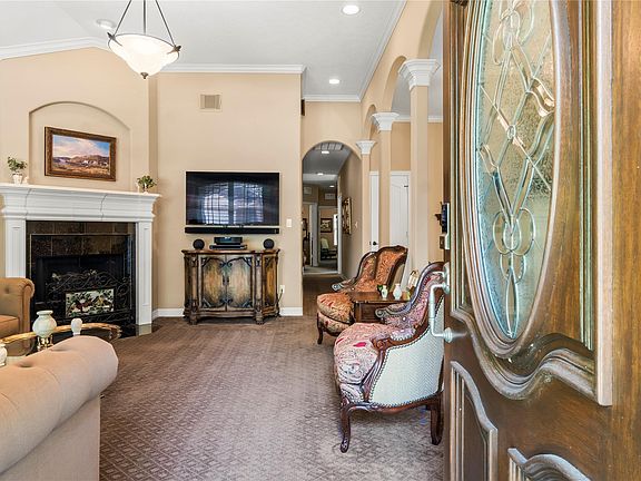 Electric fireplacePeaceful patioGranite tiled countersBeautifully landscaped exteriorSoaking tubSoaring ceilingsCrown molding