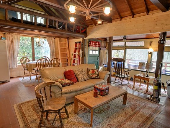You'll never leave the deck of this Still Creek cabin! Fantastic views and close to the water. Salmon spawn along this stretch in the fall. With this "10" location you get an awesome 1930's getaway with stone fireplace with new wood stove insert. Wood floors, tons of windows and a bedroom plus small loft accessed by ladder. High ceiling. Gated access with circular driveway. Leased land in the Mt. Hood National Forest. 2nd home only.