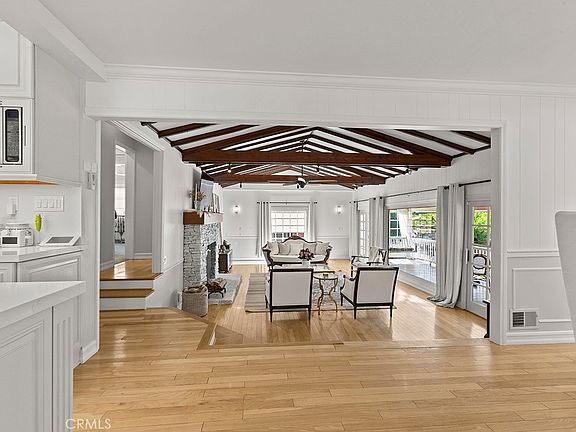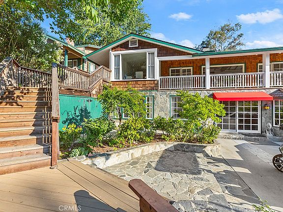 Experience the breathtaking beauty of Malibou Lake with this recently remodeled Craftsman home. This stunning property showcases impeccable character and high-quality craftsmanship, while the surrounding nature adds an extra touch of serenity. Step into the classic living room, adorned with beamed ceilings, a centerpiece stone fireplace, wood floors and expansive picture windows that offer panoramic views of the covered patio and the lake beyond. The kitchen boasts new stone counters, complemented by stainless steel appliances, new brushed gold fixtures and is accompanied by a formal dining area. For additional living space, there's a den/family room, 2 bedrooms and a full bar on the lower level.