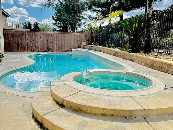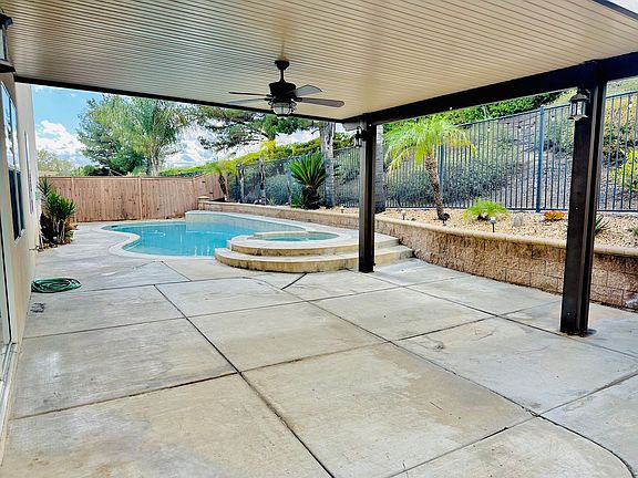 Welcome to the 5-bedroom Pool Home for rent in Murrieta, CA. This stunning property boasts 5 spacious bedrooms, including a convenient downstairs bedroom with a full bath, and a 3 car garage. The home is designed with tile floors downstairs and new carpet in the 3 upstairs bedrooms, Solid Floor in master bedroom offering a blend of comfort and style. The heart of the home, a spacious kitchen, opens up to a family room, creating a perfect space for entertaining. The property also features a fireplace for those cozy evenings. Step outside to a covered back patio overlooking a beautiful pool and spa, perfect for California's sunny days. The home also includes an upstairs balcony, allowing for an abundance of natural light to brighten up your living space. The dual HVAC system ensures year-round comfort. The rent includes landscaping and pool service, providing a hassle-free living experience. Please note, the washer, dryer, and fridge are not warrantied by the owner. Experience the best of Murrieta living in this beautiful pool home.
