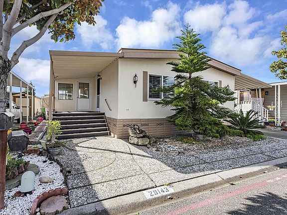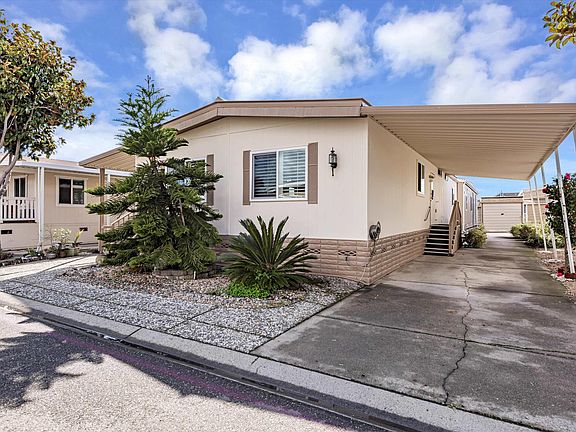 Welcome to this affordable 2-bedroom, 2-bathroom mobile home in the heart of Spanish Ranch II, a vibrant 55+ senior community! This well-maintained home offers 1,440 square feet of living space complete with a screened patio and access to fantastic community amenities, including a pool, spa, and clubhouse! The bright and spacious layout welcomes you through a covered front patio into a sunlit living room with large windows that allow natural light to fill the space. The well-equipped kitchen includes laminate countertops, decorative backsplash, freshly painted cabinets, stainless-steel refrigerator and sink, gas stove/oven, dishwasher, and a cozy breakfast bar perfect for casual dining. Two spacious bedrooms and two full bathrooms, with one featuring a walk-in soaking tub. A lovely screened in patio room provides the perfect space to relax and enjoy warm, sunny days. Additional features include heating and central air conditioning, an in-unit laundry space equipped with a washer and dryer, a two-space carport, and access to a community pool, spa, and clubhouse. Convenient location, close to major shopping, HWY 92, 238, 880, Cal State East Bay, Mission Hills Golf Course, and BART.