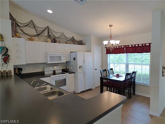 Move in ready pool home-furniture for sale separately, nicely landscaped back yard with PVC privacy fence, Bismark palm tree, cathedral ceilings, plant shelves, eat in kitchen with all appliances, breakfast bar, pantry, 5 ceiling fans, built in desk between guest bedrooms, screened lanai under truss, large pool and patio area excellent for entertaining, screen enclosed in ground heated pool with waterfall, salt system no chlorine needed, new pool pump, caged A/C unit, impact resistant windows, walk in closet in master bedroom, excellent West Lehigh location, minutes to I-75 and Ft. Myers, furnishings for sale separately.