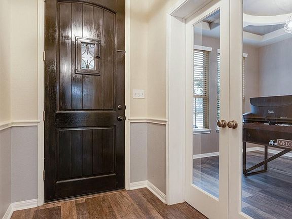 Dedicated office w/ French doors & barn door