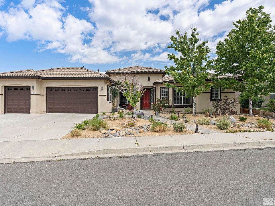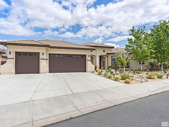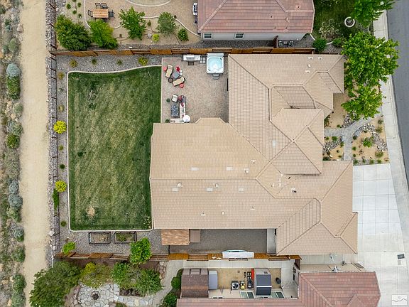 Beautiful light and bright single-family home in the Golden Hills area of Damonte Ranch. Boasting 2,568 square feet, this open floor plan has 4 bedrooms, 3 full bathrooms plus an office. The large gourmet kitchen opens onto the family room with wonderful mountain views. Upgraded laminate flooring, 2 upgraded bathrooms, breakfast bar and breakfast nook. Granite countertops with custom back splash and stainless-steel appliances., Beautiful paver patio with a hot tub and gas stubbed into the grille, and fire pit. The backyard also has raised garden beds and shed. The spacious 3 car side by side garage offers ample space for your vehicles and storage needs. Back on market due to no fault of the sellers.