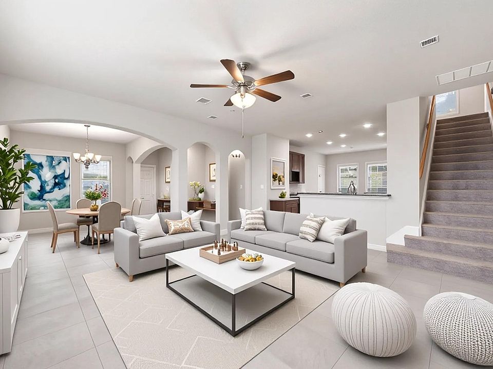 Covered patio in backyardLargest planViews of the backyardSpacious houseElegant dining roomDecorative tile backsplashSeparate tub and shower