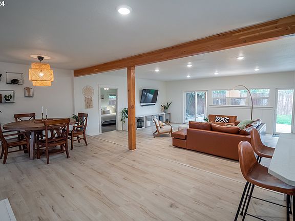 Superb South Eugene location! Blocks away from shopping center, restaurants, schools, parks and trails. This beautifully remodeled home has all the charm of its day, but enhanced with modern updates and efficiency. Open-concept main living area with new luxury vinyl plank flooring, remodeled kitchen with all new cabinets, subway tile, quartz countertops, gas range, stainless steel appliances and range hood. Primary suite complete with custom tile shower, spacious walk-in closet and has a separate entrance; offering potential for studio rental or guest quarters. New roof on house and covered patio, newer ductless heating & A/C, updated electrical, newer windows and much more. Fully fenced and very private backyard with new irrigation system. A true gem!