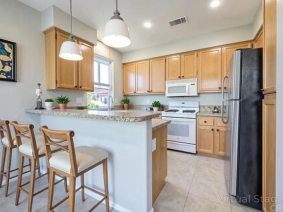 Step right into comfort with this charming 3-bedroom, 2-bathroom end-unit townhome in the highly desirable Rancho Carrillo community of Carlsbad. At 1,140 sq ft, it offers thoughtful layout and wonderful amenities in a delightful resort-style setting. Nestled in a beautiful master-planned neighborhood, this home is part of the Rancho Carrillo complex—complete with two pools, a clubhouse, lovely landscaping, and a vibrant community spirit. As an end unit, this property gives you added privacy and extra light and tranquility compared to typical townhomes; with no neighbors above or below. The first floor primary suite opens directly onto its own patio, and there's a spacious balcony off the dining area—perfect for relaxing or grilling. The unit is bright and welcoming with fresh paint throughout and soft, new carpet underfoot. The interior exudes charm with oversized tile flooring in living areas, granite countertops in both kitchen and bath, ceiling fans and plantation shutters. Central A/C, an attached 2-car garage, and tasteful fixtures keep life easy and comfortable. From the moment you walk in, this home feels fresh, cozy, and inviting. This property offers one of the most affordable opportunities to own a 3-bed, 2-bath in Carlsbad, blending value with comfort. Its end-unit design ensures peace, light, and privacy—key features hard to come by in townhome living. Step into your new chapter with ease and warmth, without compromising on quality or price. Beyond the home itself, the location shines for its proximity to well-regarded schools, abundant shopping, delicious restaurants and Carlsbad’s beautiful beaches. Easy access to both the 5 and 78 make commuting a breeze.