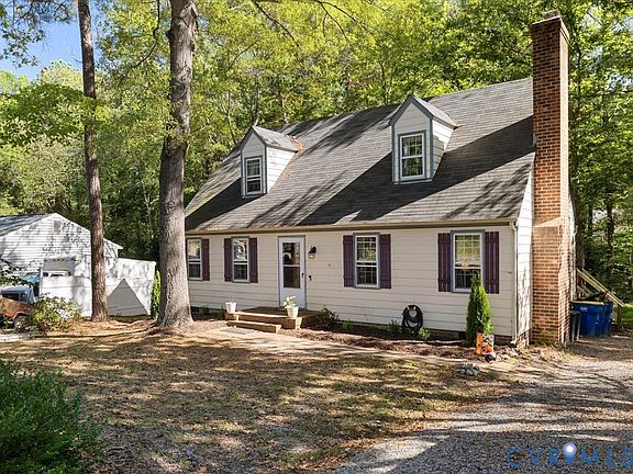 Whether you’re looking for a place you can grow into or you’re an empty nester who wants some extra space for when the grandkids come over, this home is perfect for you! Located just two minutes from Chesterfield’s River City Sportsplex and the up-and-coming surf park "The Lake," with shops, restaurants, and entertainment for the whole family, this 4-bed, 2-bath cape cod is move-in ready. Downstairs you’ll find your living room with classic wood burning brick fireplace, bookended with two real-wood built-ins. The kitchen boasts brand new LVP flooring, freshly updated kitchen cabinets, and a fridge that is less than two months old. The downstairs is finished off with two well-sized carpeted bedrooms and a full bath with brand new flooring and a new bathroom vanity and sink. Upstairs are two additional bedrooms, including the primary bedroom with new custom closet shelving and ample space. The upstairs full bath shines with new laminate tile and a new vanity and sink.Home has been well cared for with new HVAC in 2019, new hot water heater in 2015, and brand new three-rack dishwasher in January of this year. Outdoor living will become a ritual, hosting friends in your own oasis surrounded by mature trees and your very own babbling creek. Home also features a level two car charger perfect for those who already have, or are considering purchasing, an electric vehicle, to charge your car in a matter of hours at minimal cost! The charm and features are too many to list - you're going to want to visit this one in person!