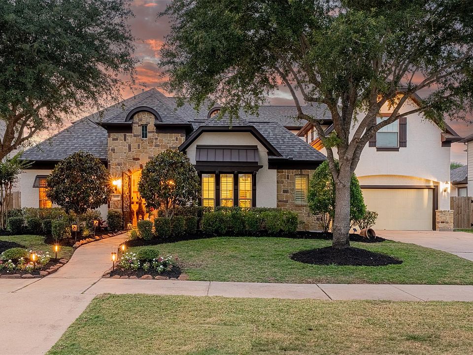 Nestled in Avalon at Telfair, this Tuscany Model home boasts top FBISD schools. custom Old-Greek style courtyard w/ an in-law suite, travertine tile floor, Tuscany limestone walls. 3-car split garage w/epoxy floors and fresh paint walls, this 2-story stone/stucco property exudes uniqueness. The grand foyer features a custom crystal chandelier, elegant drapes, and curved stairs with iron rod. Engineered wood floors, crown molding, and 8-ft tall doors adorn the first floor. Italian fireplace in the family room, open kitchen has upgraded cabinetry, stainless steel appliances, double ovens, 5-stove cooktop, marble countertop and upgraded tiles. The master suite offers a spa-like bath and spacious sitting area, the study with double French doors. Bose system in Media room. 3-AC, new roof, new fence, designer landscaping, close to Southwest Freeway and highway 6, near city park, dog park, theatre, university and shopping malls. room sizes are approximate.